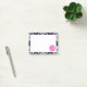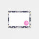 Um presente que pode ser personalizado com seu círculo dentro cor-de-rosa monograma no centro. O plano de fundo é azul marinho e o padrão branco do ikat.