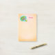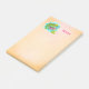 Notas pegajosas de grande porte com uma ilustração fofinha de um lagarto tropical verde rodeado de folhas e flores de cor azul-turquesa. O fundo é uma cor bege claro.