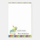 Esta almofada de nota do Cargo-it® 4x6 caracteriza um gráfico de um leitor ávido verde que senta-se sobre uma pilha de livros. A nota do Cargo-it® é acentuada com as listras coloridas preliminares na parte superior e na parte inferior. A parte inferior da almofada lê "UMA NOTA DE" com texto customizável para o nome do professor. Isto faz um grande presente do professor.
