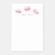 Oh la la! Estas bonito notas pastéis irão adicionar talento parisiense até às tarefas diárias mais mundanas. Design apresenta um trio de biscoitos macarões franceses cor-de-rosa pincelados pastel com o seu nome ou escolha de personalização em caracteres modernos.