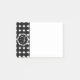 Os pontos pretos nos trimestres próximos criam um padrão secundário de estrelas brancas. Um grande círculo preto é rodeado por linhas brancas, enquanto um solteiro inicial branco agarra o centro.