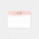 Estas notas de post-it caracterizam uma lavagem do fundo da aguarela em cor-de-rosa e podem ser personalizadas com um nome.