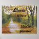 "BLOOM ONDE VOCÊ ESTÁ PLANTADO" é um POSTER motivacional na coleção decorativa HOUSE OF SUNSHINE. Ela é reproduzida a partir de uma pintura original a óleo feita pelo artista e escritor do Kentucky, Gerry K. Furgason. O trabalho está incluído em sua série de palavras do SUL DRAWLS para viver e frases para lembrar, assim como sua coleção de PRAYERS AND PHRASES.