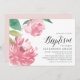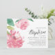 O convite batismo chic para a sua bebê apresenta ilustrações de flor de peônias de cor d'água em cor rosa vibrante, acentuado com folhas verdes e peludas. Personalize com sua cerimônia de batismo e detalhes de celebração alinhados à direita. Cartões inversos a rosas sólidas.