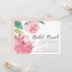 O convite para o brunch de chá de panela chic apresenta ilustrações em cor d'água de uma flor de pénia, em cor rosa vibrante, acentuado com folhas verdes e peludas. Personalize com seus detalhes de brunch noiva alinhados à direita. Cartões invertidos a um rosa pálido e pálido.