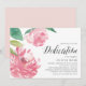 Convites florais bonitos para a dedicação do seu bebê apresentam peônias de aquarela em cor rosa vibrante, acentuadas com folhas verdes e peludas. Personalize com os detalhes de dedicação do seu bebê alinhados à direita e embelezados com a caligrafia. Convites inverso a pastel sólido cor-de-rosa.