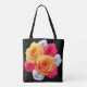 Rosas Coloridos Em Sacos De Sangue Motif Impressão. O design de saco de tote apresenta um belo rosa em um filme florescente. Inspirado pela beleza espantosa dos rosas no florescimento cheio. Os rosas coloridos são colocados sobre um fundo preto, o que os mostra bem. Faz o presente perfeito para a família ou amigos que amam rosas. Obrigado pelo apoio e pela visita à minha loja - UniquelyDistinct. Sinta-se livre para transferir este design em outros produtos do Zazzle.