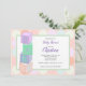As cores suaves do pastel criam este belo convite com blocos de bebês sobre fundo de bolhas. Este é um belo convite para chás de fraldas que irá separá-lo de todos os seus amigos.