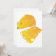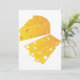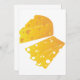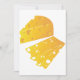 O queijo tem todas as formas e sabores. Este design é um bloco de queijo numa cunha em forma de triângulo. O queijo tem duas fatias planas ao lado do bloco. O queijo tem buracos como queijo suíço. Este bloco de design de queijo parece excelente nestes convites