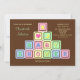 Este convite para chás de fraldas bonitinho e neutro apresenta blocos para bebês com designs bonitos e as letras que soletram CHÁ DE FRALDAS em rosa, amarelo, verde e azul. Você pode colocar todos os seus detalhes de convite ao lado dos blocos de bebês para fazer um convite para chás de fraldas neutro de gênero. Direitos autorais