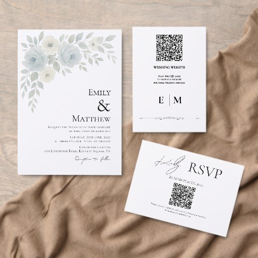 Modern Love deserves a modern invitation. This elegant wedding thank you card features a clean minimalist layout with blue and ivory floral design. Ideal for contemporary, romantic, or upscale wedding themes. The design balances simplicity with emotional warmth. customizable for your names, website and QR code.