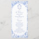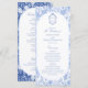 This Delft blue floral wedding program is designed in a refined blend of chinoiserie and French toile de Jouy style. Delicate botanical illustrations frame an elegant oval arch layout, creating a timeless and romantic presentation. The program includes space for the ceremony order, wedding party details, and a thoughtful thank you message, making it both beautiful and practical for your special day.