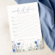 Bem-vindos ao seu novo bebê no mundo e juntem sabedoria amorosa para a sua viagem em frente com o Blue Baby In Bloom Wildflower Baby Advice Card. Este jogo especial de chás de fraldas florais convida os hóspedes a compartilhar suas dicas para ajudar seu pequeno florescimento. Torne seu chá de fraldas inesquecível, fazendo com que os entes queridos imitem suas dicas de parentalidade neste cartão de conselho de querido. É o alternativo perfeito para um livro de hóspedes! Dê a sua nova chegada o começo florescente que merecem com palavras de sabedoria no Blue Baby In Bloom Wildflower Baby Advice Card. Esta doce preservação floral irá fornecer orientação e boas memórias nos próximos anos.