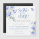 Uma forma excelente de manter seu dia especial na mente da família e dos convidados - este cartão magnético pode ser colocado em geladeiras, armários de arquivos, e mais para lembrar a todos que você está prestes a se casar. Adornada com bonito flores azuis, uma borboleta azul e uma fonte em negrito que é fácil de atualizar.