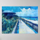 Blue Boardwalk Stroll Beach Watercolor Poster