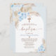 Blue Boho Floral Arch Boys Baptism Convite Bohemian inspirou o batismo de um menino apresentando dois arranjos florais azuis para bebês com grama pampas, uma imagem caligráfica moderna que se posiciona em folha de cobre falsa e um arco branco sobre um fundo azul-bebê. Este moderno convite para o batismo floral boêmio é ideal para quem gosta de convites inspirados na boêmia.
