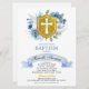 Blue Boho Floral e Dourado Convite para o Batismo do Crest