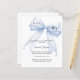 An elegant white background, decorated with a large blue bow with pearls. Personalize and add a name and party details.