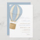 Aventura espera! Nossos convites para o chá de bebê com ar quente azul DIY são a maneira perfeita de celebrar o novo bebê menino no caminho com um chá de fraldas de balão azul quente. Perfeito para um chá de fraldas de menino, esta aventura azul moderna aguarda o chá de fraldas convida balões de ar quente azuis. A aventura azul CAELUS aguarda o chá de fraldas convidado design apresenta um design moderno e minimalista com um fundo branco com um balão de ar quente azul-aquarela, combinado com a frase 'Aguardam Aguardas' usando uma fonte de script com caudas em azul, com os detalhes do chá de fraldas do balão de ar quente do outro garoto em ouro para adicionar interesse visual ao seu convite para chá de fraldas de balão de ar quente. Personalize este convite de chá de fraldas de balão de ar quente azul adicionando nomes, data, hora, local e outros detalhes.