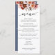 Aprecie seus convidados com este cartão de menu refinado. Separe o design que apresenta no topo um arranjo único cor-de-rosa e burgundy e no fundo o(s) seu(s) nome(s) e data. Escreva a tipografia de Script na parte traseira e frontal com a mensagem de obrigado para os convidados. De volta em uma elegante sombra azul empoeirada.