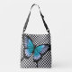 Blue Butterfly Classker Checker Cross Body Tote Ba