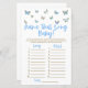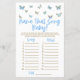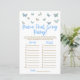 Este é um nome "Themed" "Blue Butterfly" Que Song Baby! Jogo do chá de fraldas. *Chame Essa Música! - Tocar 10 músicas e ter convidados adivinhando o título da música e o(s) artista(s) das músicas tocadas. Quem tem o mais certo, ganha!