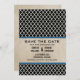 Quatrefoil Chic Elegante e moderno Salve o Anúncio de Data com um plano de fundo marroquino de tendência, um papel de vintage com o olhar de fundo e um par de listras azuis reais finas. Este na moda para salvar o convite de data é fácil de personalizar com seus detalhes de casamento. Clique em "Personalizar" para encontrar mais opções de personalização.