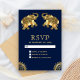 Cartão RSVP Elegante com elefantes decorados lindamente contra fundo azul escuro.