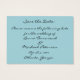 Mini salvando a data que anunciar os cartões de casamento são um lembrete fácil e prático para o convidado do evento que está por vir. Os cartões salve a data de elegância azul apresentam um fundo preto de dois lados, e a frente oferece um espaço para personalizar seu cartão com sua própria foto e nomes. Também apresenta uma faixa azul clara com um pequeno gráfico floral no topo da faixa. Ambos os lados da placa têm uma compilação em modelo para ajudá-lo a personalizar com todo o seu próprio texto. Os minicartões salve a data são projetados como um grande estilo de cartão de visita. Oferecida em três tamanhos convenientes, o Design pode facilmente ajustado qualquer um dos seguintes tamanhos: Chubby (2,5" x 3,5") embalado como 100 placas, Skinny (1" x 3") embalado como 20 placas ou Business (2" x 3,5") embalado como 100 placas. Para escolher um tamanho diferente, basta selecionar a guia "Opções de Cartão de visita". Use o modelo pré-fabricado para personalizar cartões salve a data com toda a sua própria redação. Altere o estilo e/ou a fonte do texto selecionando o recurso "personalizá-lo".