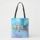 Arte de rabisco, carta desenhada à mão da cidade de Eugene! Um fundo azul de desfoque neste bolsa fofo!