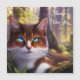 Grande Gatinho de olhos azuis cercado por árvores e verde. Arte AI criada por minx267