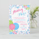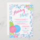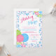 Um doce divertido, chamado design de convite Bat Mitzvah, com faux glitter confetti border com ilustrações de lollipop e swirl candy. Combinação de cor branca de azul, rosa e verde. Os designs são ilustrações/gráficos impressos planos - NÃO O GLITTER REAL. Gráficos por www.jwillustrations.com