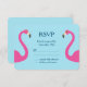 Este é o RSVP coordenador do Convite de Casamento de Praia Flamingo. Inflamingos cor-de-rosa divertidos em um sotaque de fundo azul claro, este cartão de resposta, fazer-o perfeito para um evento temático flamingo de verão, destino, casamento tropical ou praia. Os itens de coordenação podem ser encontrados na Coleção de Casamento de Praia Blue Flamingo. Se você precisar de ajuda para personalizar este convite ou precisar de outros itens de coordenação, entre em contato conosco em prettyfancyinvites@gmail.com com sua solicitação.