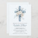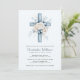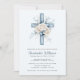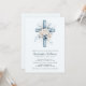 Celebrar o marco espiritual do seu filho com este belíssimo convite batismo. Apresentando uma cruz azul-aquática macia adornada com rosas brancas e delicados sotaques florais, este design eterno é perfeito para o batismo do seu filho, batizar, ou cerimônia de dedicação ao bebê.