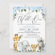 Blue Floral Foliage Safari Animal Invitation Sweet safari animais tematizados de chá de fraldas de menino com quatro aquarelas safari ou animais da selva, alguns com disposição floral azul e um título de caligrafia moderno. Este menino é um pouco selvagem no caminho o convite para chá de fraldas também apresenta um padrão floral design no verso e o título pode ser removido. É ideal para alguém que procura o convite de chá de fraldas de um menino com o tema safari.