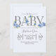 Este belo e elegante design apresenta buquês de flores pastel azuis e uma cinza. Simplesmente personalize com suas informações e você tem um chá de fraldas bonito convidando todos para ir!