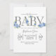 Este belo e elegante design apresenta buquês de flores pastel azuis e uma cinza. Simplesmente personalize com suas informações e você tem um chá de fraldas bonito convidando todos para ir!