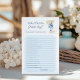 Pop do prosecco e deixe os jogos começarem com este jogo do Chá de panela: O que o noivo disse? É mais do que um jogo; é uma experiência brilhante, inesquecível. Todas as perguntas são editáveis. Para obter itens correspondentes, visite nossa Coleção de Petais Azuis e Prosecco