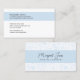 As flores azul e branca pastel infundem esta design com um charme parisiense feminino, complementado por uma caligrafia graciosa na frente e uma fonte elegante e legível no verso. Um cartão de visita ideal para um celebrante de casamento ou para qualquer número de profissões.