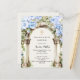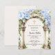 Um grande arco de mármore decorado com flores azuis e uma cruz de ouro. Personalize e adicione um nome e detalhes. 1 folha = 1 convite impresso de borda a borda.