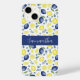 This blue French Country lemon pattern iPhone 14 case features watercolor lemons and delicate blue botanical accents with custom name. This design offers a perfect blend of rustic warmth and sophisticated style.