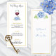Blue Hydrangeas Wine Glass Wedding Flat Menu