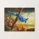 Um quebra-cabeça de serra que apresenta a arte de um belo pássaro azul sentado num galho de madeira numa antiga floresta. Use o menu à esquerda para escolher entre os diferentes tamanhos de quebra-cabeça disponíveis. Ou veja o menu abaixo para ver esta arte numa gama de outros produtos legal do Zazzle.
