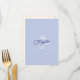 A refined blue wedding menu card featuring a soft minimal layout with citrus-inspired details. The combination of clean typography and delicate illustration creates a fresh Mediterranean look, perfect for summer weddings and destination celebrations.