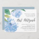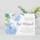 Convites florais doces para morcegos mitzvahs apresentam peônias de aquarela em blues macio, acentuados com verde-luxuoso. Personalize com seus detalhes do Bat Mitzvah alinhados à direita e embelezados com a caligrafia. Convites inverso a azul claro sólido.