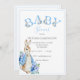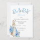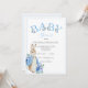 Uma tipografia "BABY", de cor azul-clara, com coelho do coelho Beatrix Potter adicionado no convite para chá de fraldas de fontes. Tão fofo para aquele chá de fraldas do bebê. 100% de satisfação do cliente com o "Zazzle"