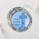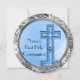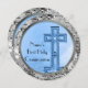 As sequências cintilantes de prata e design de borda interna de prata (gráficos impressos, não sequências reais) são adicionadas a esses convites redondos populares. O design único e bonito com cores azuis e prateadas, mostrado diz: A "Primeira Comunhão do Nome" na frente com um design de arte original de uma cruz especial com uma estrela, tudo refletido nas ondas de água pacíficas abaixo. Altere facilmente o nome e adicione o texto personalizado no verso. Lembre-se deste dia sagrado especial com estes convites e anúncios personalizados para sua família e amigos. excelente também para confirmações, batismos / batizações para bebês, eventos de igreja Páscoa e casamentos! Mostrado é o novo convite popular!