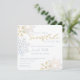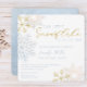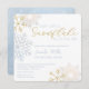 Bem-vindos ao seu pequeno floco de neve com este encantador convite ao chá de fraldas das maravilhas do inverno. Apresentando flocos de neve de azul e ouro suave e gelados, emparelhados com uma escrita elegante, esta design é perfeita para uma celebração com tema de inverno. Personalize com os detalhes do seu partido para dar o tom para um encontro encantador e mágico em homenagem à chegada do bebê.