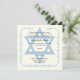 A Estrela Azul de David damask Bat Mitzvah convida, com uma elegante borda úmida e a Estrela de David em azul claro sobre fundo marfim. Na moda e clássico ao mesmo tempo esse convite é perfeito para um Bat Mitzvah moderno ou tradicional.