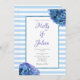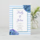 Um bonito design de flores azuis de hydrangea com listras azuis e brancas. Os convites e as placas estão disponíveis em uma seleção de opções de forma (bordas arredondadas, redimensionadas etc.) e em uma seleção de texturas de papel. Os estilos de fonte, cor e tamanho são personalizáveis. Você pode encontrar outros designs com muitos produtos de coordenação em nossa loja, incluindo convites, salvar a data e as placas rsvp, obrigado que você marcar e muito mais.
